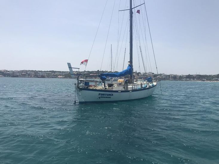 The boat is produced by Bluewater Boat Company in Seattle, Washington/USA, and is designed by the famous Colin Archer and William Atkins (the design is mainly inspired by Viking ships). It is a double-ender (partially tirhandil design) cutter (ketch) type sailboat with a high sea comfort ratio and high resistance to bad weather. It is a special sailboat with a story, including all journal records, photographs, and maintenance records from production (1976) to 2021. It was purchased from the wife of its first owner, David Heath (American), after his passing. He spent his life on this boat and crossed the Pacific twice and the Atlantic once with this boat, arriving in Antalya Finike in 2009. It is known by its former name ALEGRIA. The main features are as follows:It has a total length of 12.5 meters, approximately 4 meters beam, and 1.8 meters draft.
